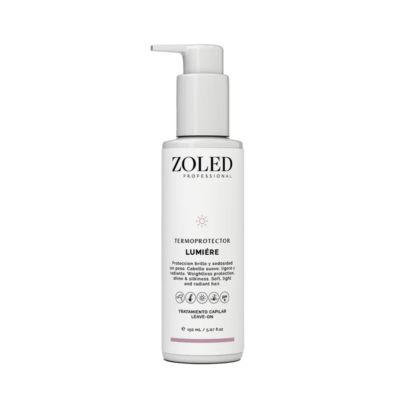 Termoprotector Lumière profesional esta formulado para aportar peso equilibrado, un acabado sedoso y un brillo luminoso, realzando la textura y el movimiento natural del cabello. Su acción envolvente suaviza la superficie capilar, mejora la manejabilidad y evita el frizz sin dejar residuos pesados. Incorpora RLED5-FIBER, una tecnología que refuerza la cohesión interna de la fibra y optimiza su estabilidad, además de nivelar el pH para un acabado más uniforme y pulido. Lumière ofrece protección avanzada gracias a su filtro UV y su escudo antipolución, defendiendo la fibra de factores ambientales y del impacto de herramientas mecánicas y térmicas, preservando brillo e integridad. Aunque no utiliza tecnología inteligente, su fórmula maximiza la suavidad, el efecto luminoso y un acabado con peso elegante y tacto seda.