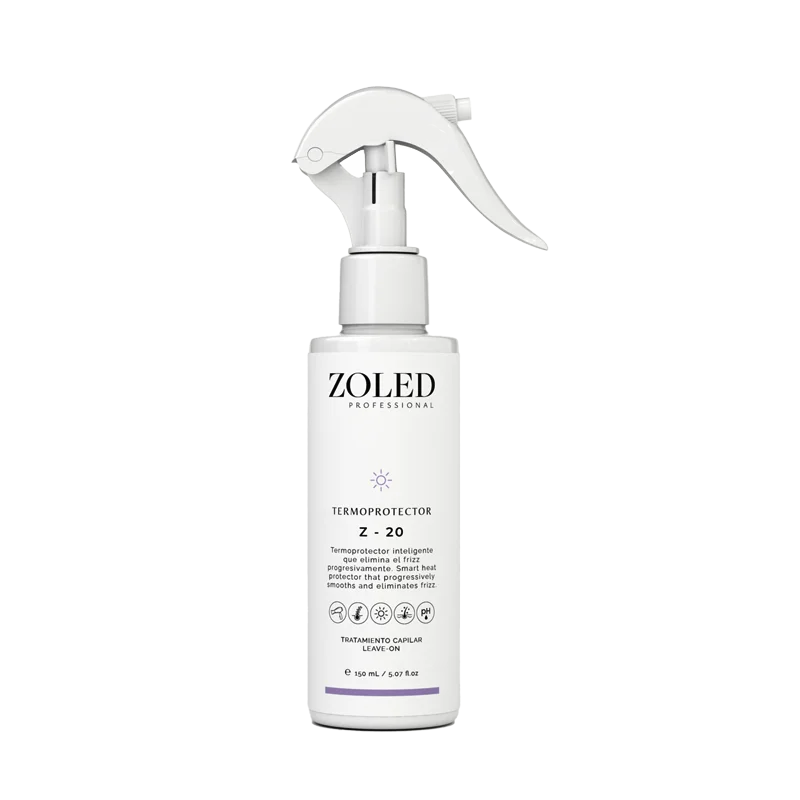 Z-20 es un termoprotector inteligente diseñado para ofrecer protección integral frente a polución, factores ambientales, herramientas térmicas y radiación UV. Su fórmula modula la respuesta de la fibra, brindando defensa, reparación y fortalecimiento continuo. Incorpora la tecnología RLED5-FIBER, que mejora la estabilidad estructural, refuerza la cohesión interna y aumenta la resistencia ante el calor y el desgaste diario. Además, Z-20 nivela el pH, aportando brillo, fuerza y mayor estabilidad. Su acción progresiva reduce el frizz de forma acumulativa, dejando el cabello más disciplinado y suave. Realiza reparación constante, minimizando el quiebre y preservando la vitalidad del color mediante su filtro UV.