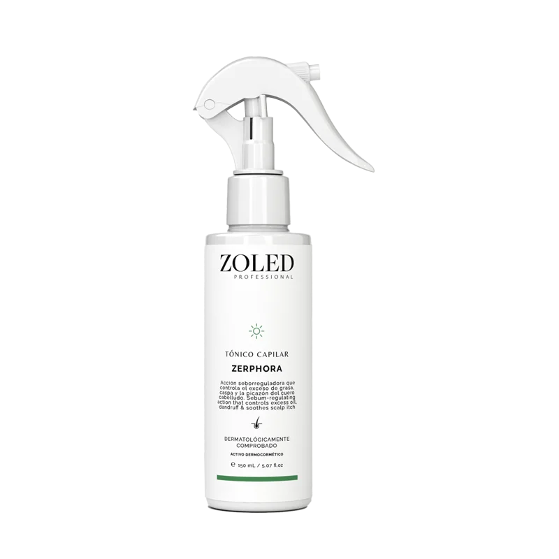 Zerphora es un tónico capilar de alta tecnología diseñado para regular el exceso de grasa, controlar la caspa y disminuir la picazón del cuero cabelludo, ofreciendo un alivio inmediato y una sensación de confort duradero. Su acción seborreguladora equilibra la producción de sebo y restaura la estabilidad cutánea, favoreciendo un entorno más limpio y saludable. Su fórmula integra exosomas de última generación y tecnología biomimética, capaces de imitar los procesos naturales del cuero cabelludo para optimizar su función, reforzar su equilibrio biológico y acelerar la recuperación de zonas irritadas o alteradas. Esta sinergia reduce la descamación, modula la reactividad y mejora la calidad del cuero cabelludo desde las primeras aplicaciones.
